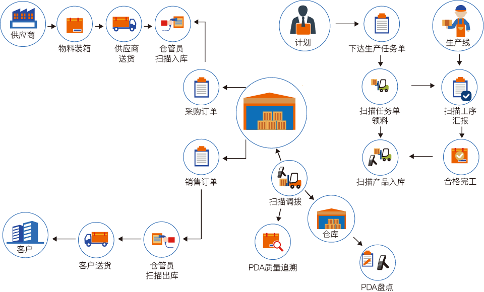 WMS仓库管理系统是一款标准化、智能化过程导向管理的仓库管理软件,它结合了众多知名企业的实际情况和管理经验,能够准确、高效地管理跟踪客户订单、采购订单、生产工单以及仓库的综合管理。使用后,仓库管理模式发生了彻底的转变。从传统的“结果导向”转变成“过程导向”;从“数据录入”转变成“数据采集”,同时兼容原有的“数据录入”方式;从“人工找货”转变成了“导向定位取货”;同时引入了“监控平台”让管理更加高效、快捷。二维码管理实质是过程管理,过程精细可控,结果自然正确无误。